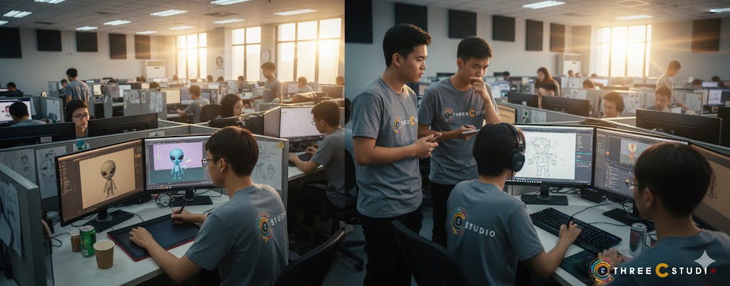 Đồng hành chiến lược: Three C Studio không chỉ sản xuất mà còn tư vấn về chiến lược nội dung, phân phối và xây dựng thương hiệu hoạt hình lâu dài.