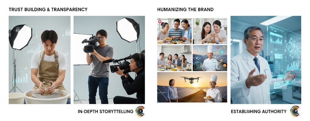 Đối với các ngành nghề cần uy tín tuyệt đối (như y tế, công nghệ, giáo dục), Documentary là công cụ hoàn hảo để chứng minh chuyên môn.