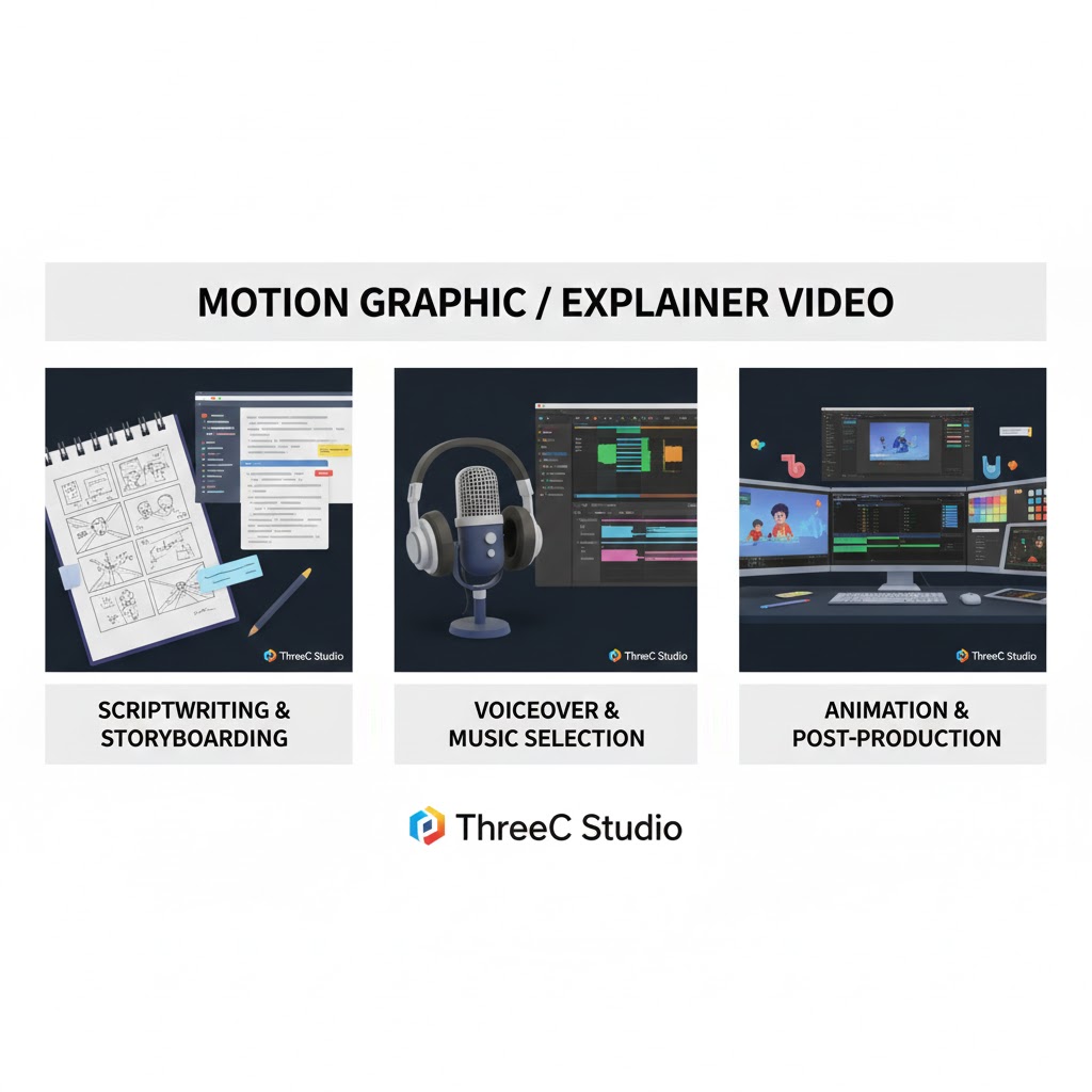 Quy trình sản xuất Motion Graphic / Explainer Video tại ThreeC Studio được tối ưu hóa để đạt hiệu quả cao nhất: